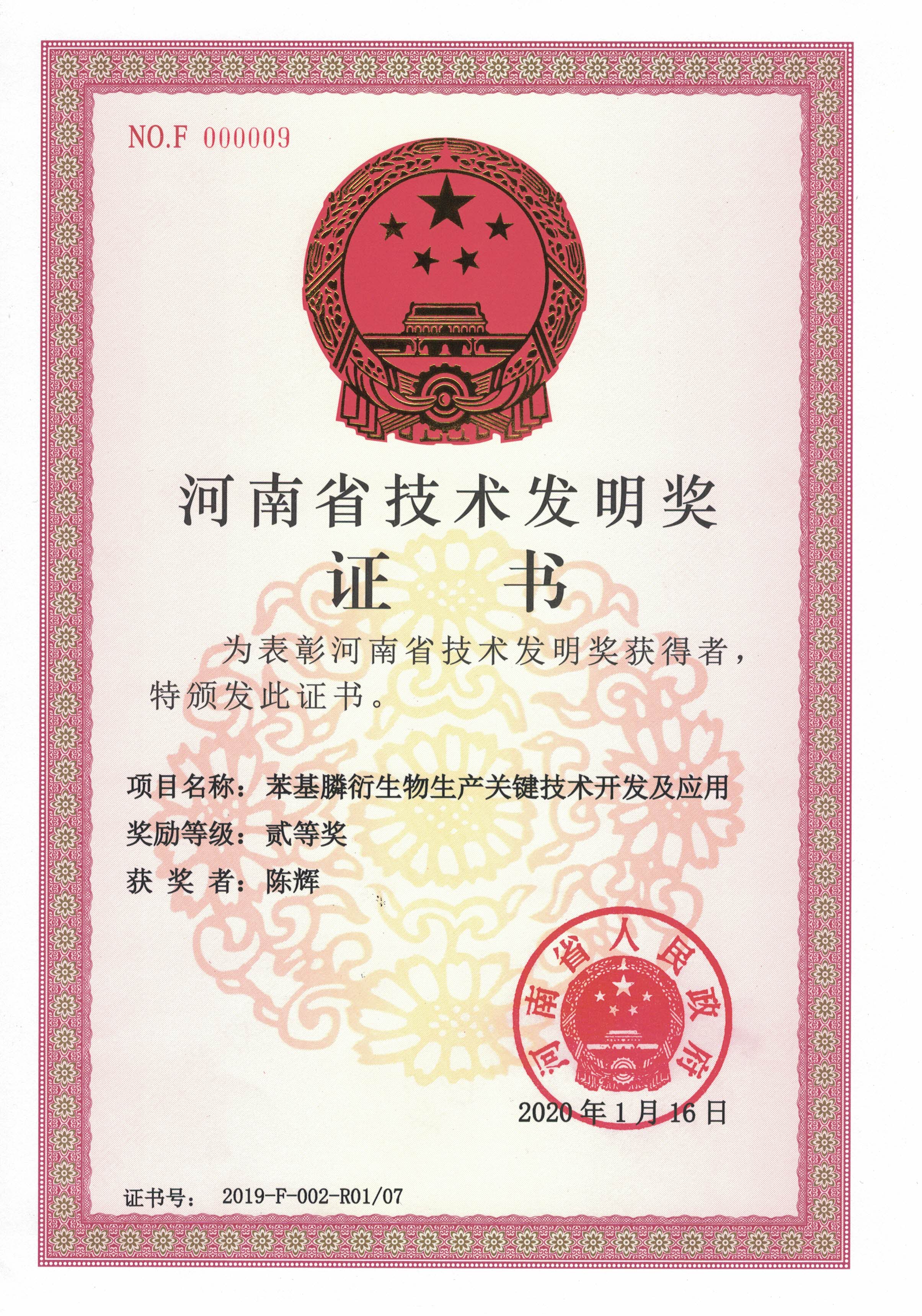2020年3月,陳輝博士主持的《苯基膦衍生物生產(chǎn)關(guān)鍵技術(shù)開(kāi)發(fā)及應(yīng)用》成果獲得2019年河南省科學(xué)技術(shù)發(fā)明獎(jiǎng)二等獎(jiǎng)。該項(xiàng)目開(kāi)發(fā)了選擇性切斷碳膦鍵“一鍋法”生產(chǎn)系列苯基膦衍生物的新工藝,深入研究了系列苯基膦衍生物反應(yīng)過(guò)程中催化劑的選擇對(duì)反應(yīng)收率的影響規(guī)律,解決了生產(chǎn)過(guò)程中有機(jī)膦類化合物穩(wěn)定性差、難以產(chǎn)業(yè)化的關(guān)鍵技術(shù)難題,經(jīng)濟(jì)、社會(huì)效益顯著。
